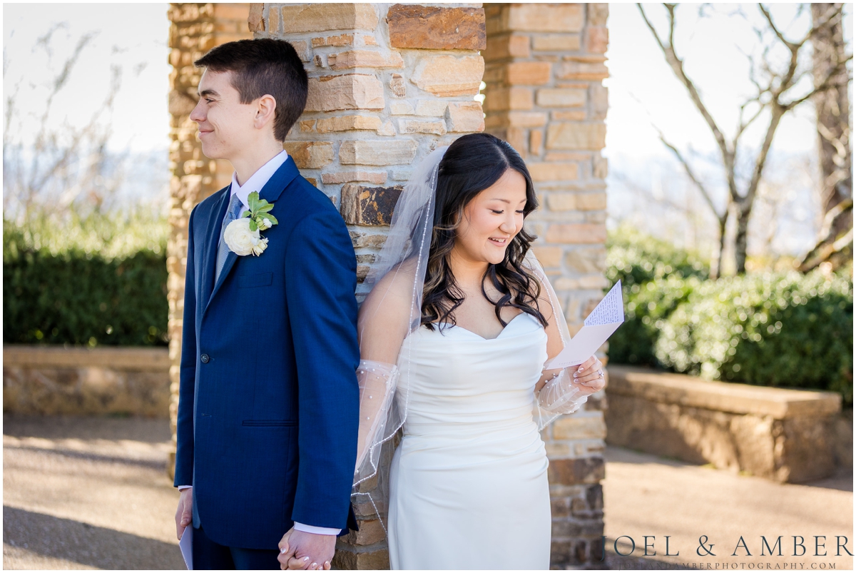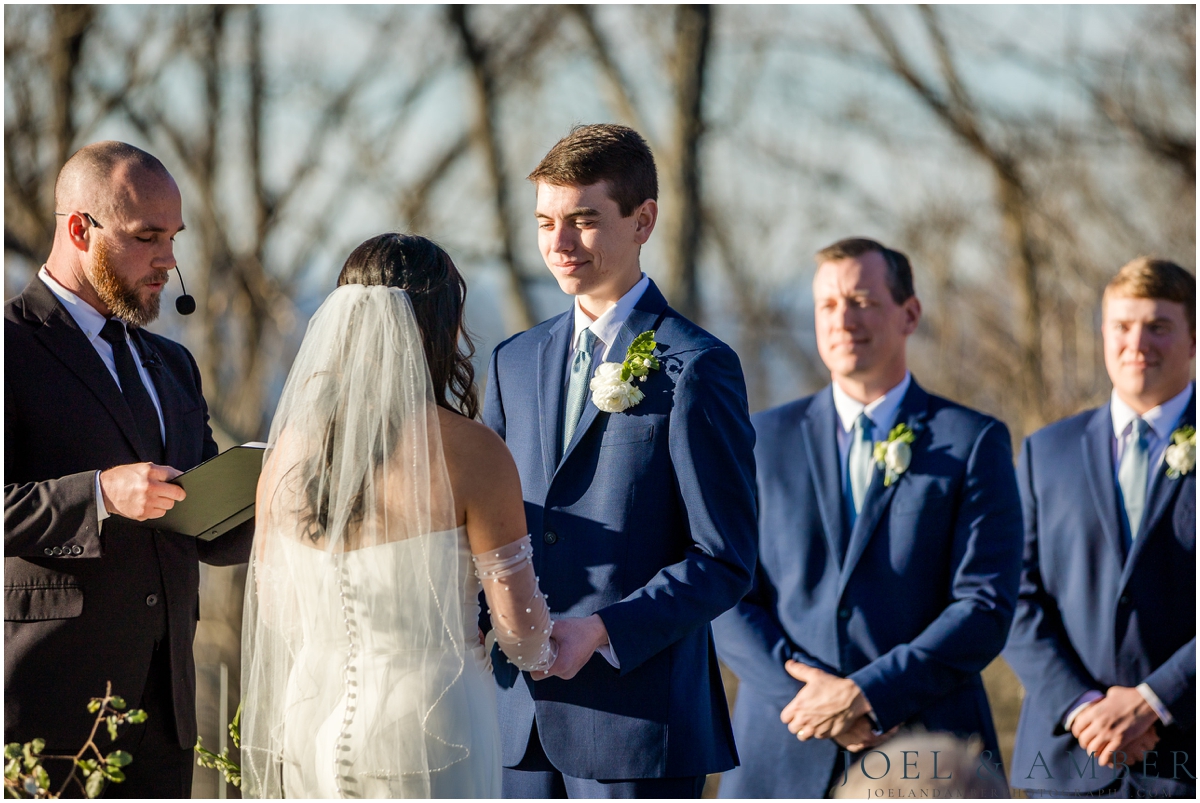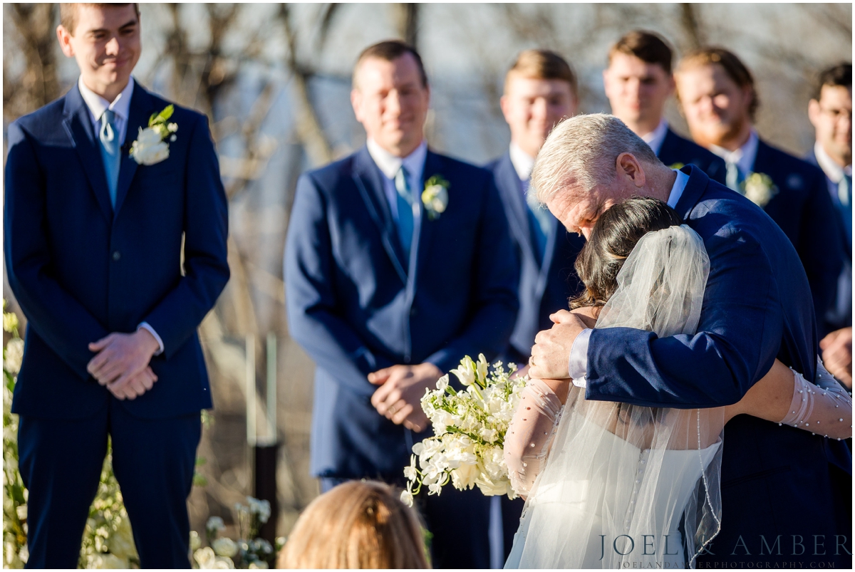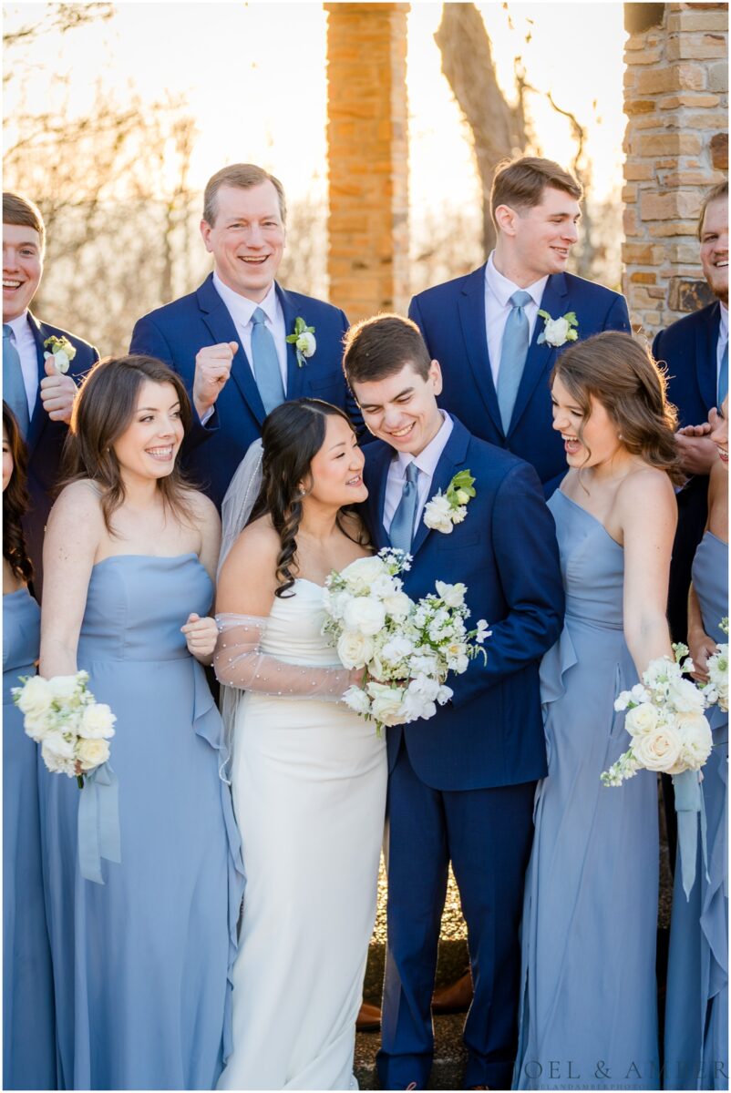 After a frigid start to the week, the wedding day dawned into a dreamy, sunny 60-degree afternoon. God painted a blue sky backdrop for the ceremony and sprinkled in all the golden glow to end Ellie and Josh’s wedding day portraits. Literal winter weather perfection.